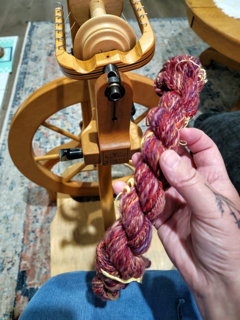 I thought the colors in it were really beautiful and I find it easier to see my mistakes while spinning if there is some amount of color variation to the fiber. A friend of mine, after I posted a photo of the Nube in my Discord, let me know that people often have troubles with Nube specifically and linked to some Reddit posts that talk about the issues. I was really thankful that she reached out to me about it, as I inevitably would have struggled, and since I’m so new to this I would have thought it was because of something I was doing. So I followed the advice given and it was just fine.